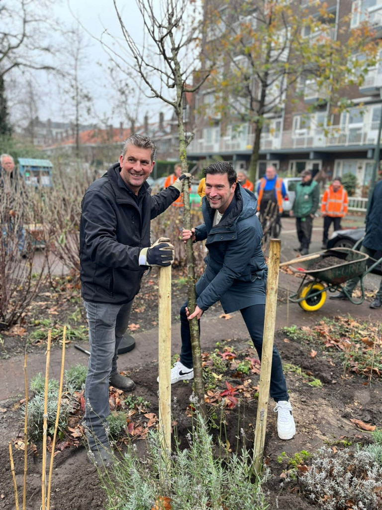Vandaag in de Vruchtenbuurt een perenboom geplant. De wijk heeft begin dit jaar besloten dat een deel van het wijkbudget besteed moest worden aan het vergroenen van de wijk en daarom zijn er 10 fruitbomen en 15 bessenstruiken gekomen.