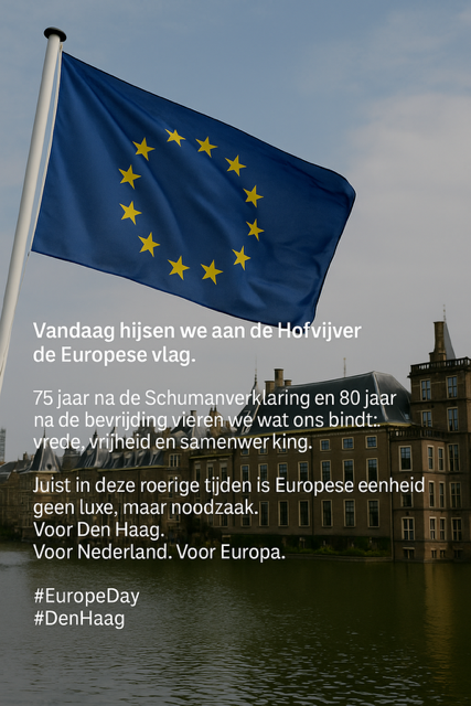 Today, on this beautiful and meaningful morning by the Hofvijver, we raise the European flag to mark Europe Day—a day that celebrates unity, peace, and cooperation across our continent.